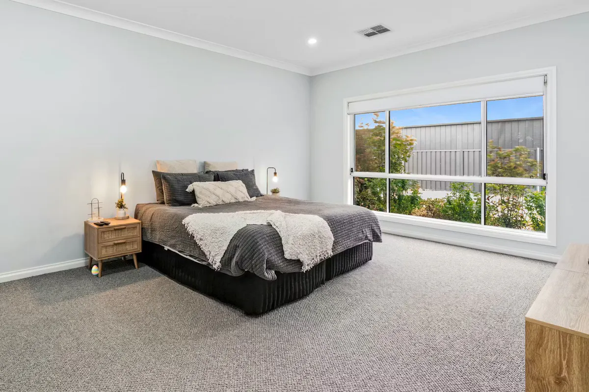 This modern 3-bedroom, 2-bathroom home was built in 2024 by the highly regarded Ben Hahn Building, showcasing quality craftsmanship and contemporary design throughout.The home offers a light-filled open-plan living and dining area, complemented by a stylish modern kitchen ideal for everyday living and entertaining. Comfort is assured year-round with ducted heating and cooling throughout. The master bedroom includes a walk-in robe and private ensuite, while the remaining bedrooms are well proportioned and have built-in storage. A well-appointed main bathroom services the home, and a single car garage provides secure off-street parking.